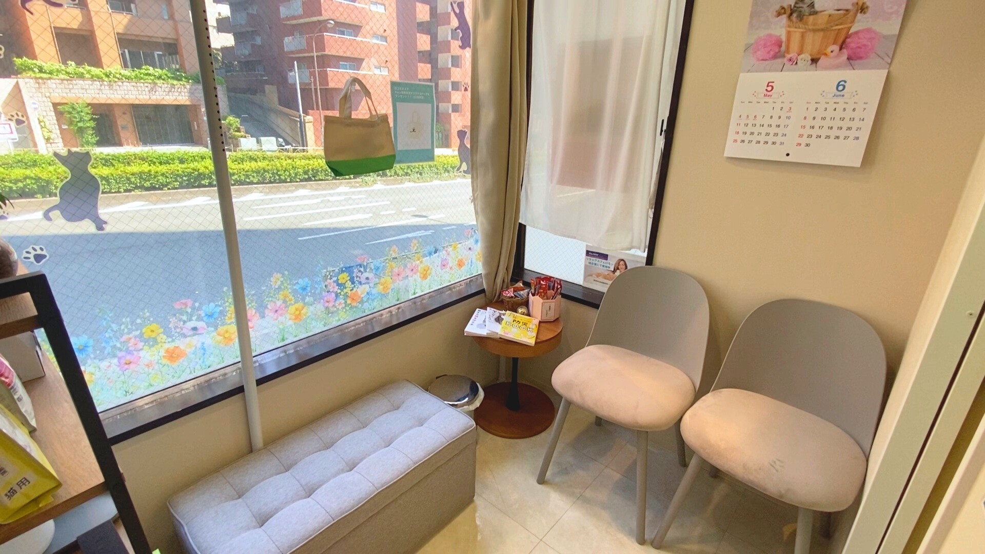 待合室や診察室では他の動物と顔を合わせることのない、やさしい空間を整えています。